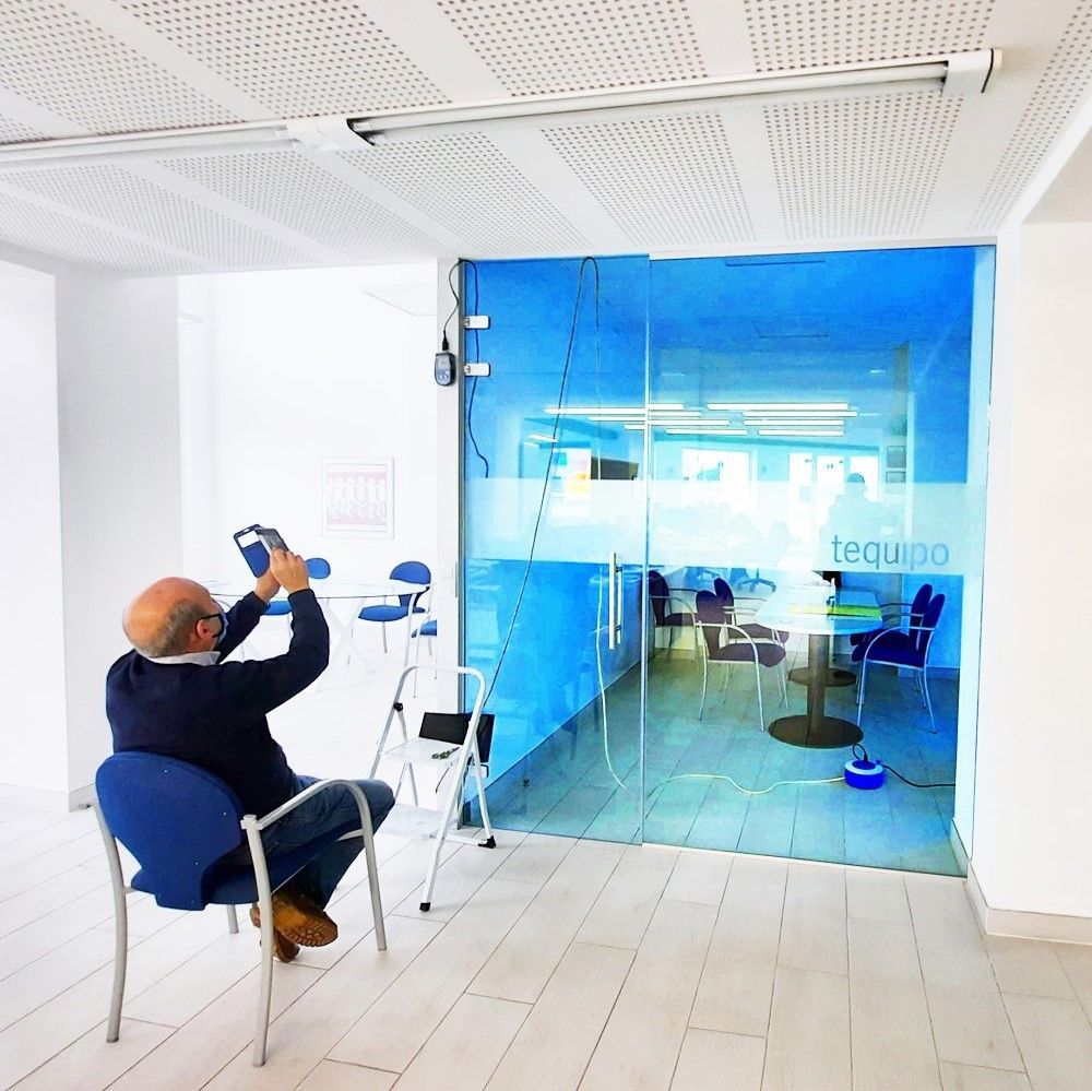 In response, we have developed a device that is effective against biological agents, such as SARS-CoV-2, in the air in the presence of people and on uninhabited surfaces. These devices were tested by the University of Burgos, have CE marking, and are currently installed and operating in several locations in Burgos: the Civic Center of La Estación, the San Amaro Higher Polytechnic School, the Faculty of Economics, the Faculty of Education, the Vena Polytechnic School, the Faculty of Chemical Sciences, the Faculty of Law, the Rector's Office, and the Faculty of Health Sciences. In 2022, we were granted a Spanish patent.